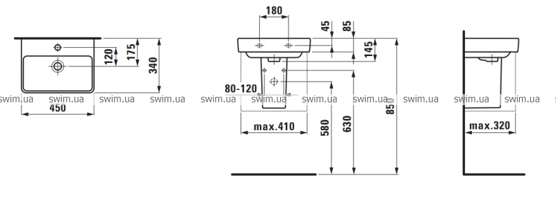 - Тип монтажа: подвесной, для установки на мебель, на пьедестал, полупьедестал