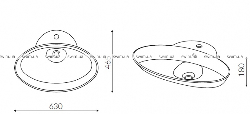 - Габаритные размеры раковины: 630x465x185 мм
