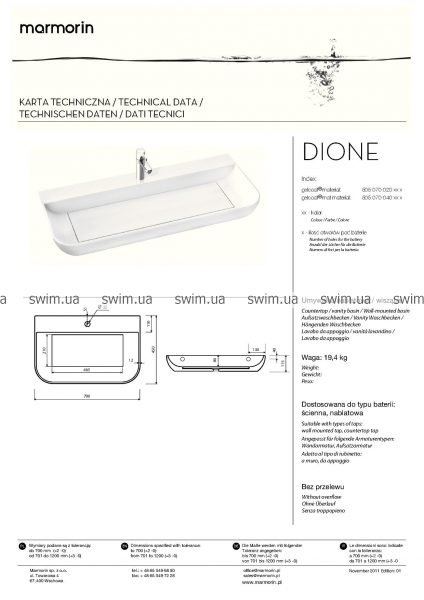 ***Внимание!!! По Вашему желанию раковина marmorin может производиться с одним, двумя или без отверстия для смесителя. При заказе укажите пожалуйста менеджеру количество отверстий для смесителя либо то, что Вам нужен умывальник marmorin без отверстия для смесителя. По умолчанию умывальник marmorin поставляется с одним отверстием!!!