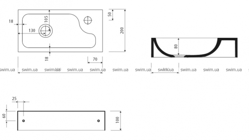- Габаритные размеры раковины: 400х200х100 мм