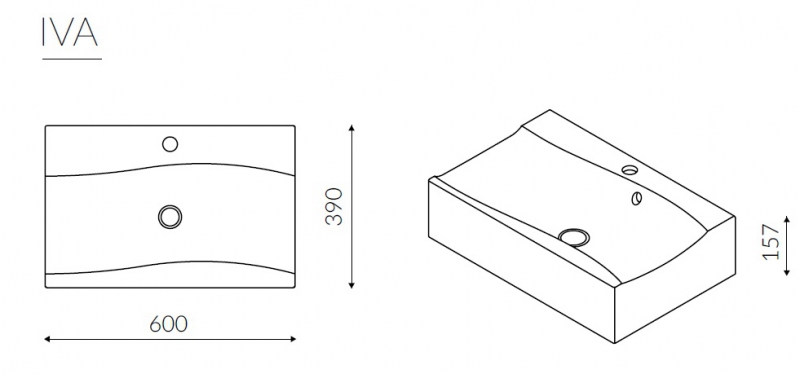 - Габаритные размеры раковины: 600x390x160 мм
