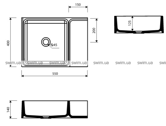 - Габаритные размеры раковины: 550x400x140 мм