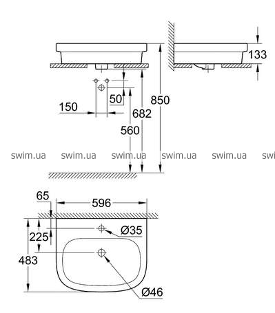 - 1 отверстие под смеситель