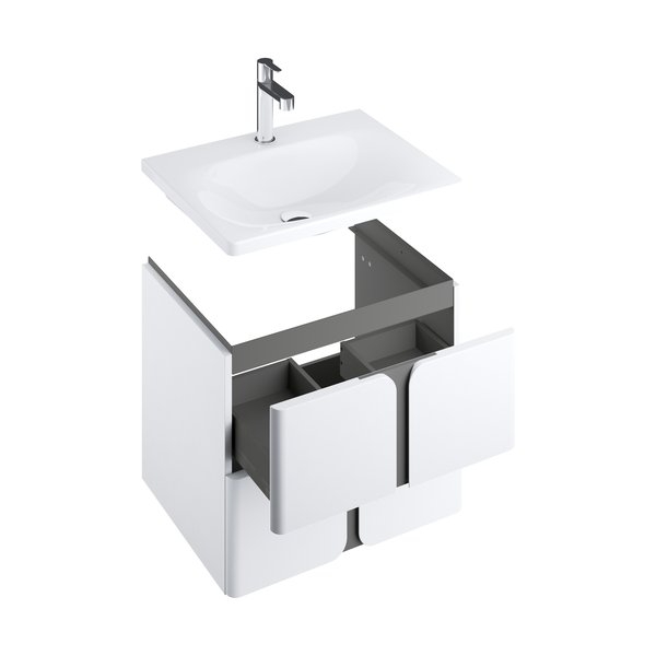 Керамический умывальник Balance наименьшего размера, встроенный в подвесную тумбу той же серии, решит проблему нехватки места в ванной комнате. Точная форма умывальника сделает его использование и последующую чистку максимально легкими.