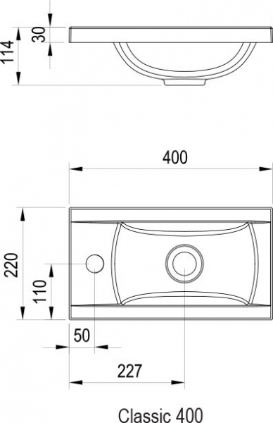 Умывальники Classic поставляются с отверстием 35 мм под смеситель, также их можно дополнить дополнительными аксессуарами (сливом для умывальника и сифоном RAVAK).