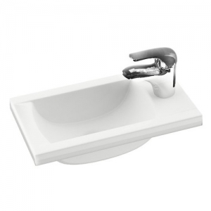 Мини-умывальники из литого мрамора длиной 40 см, правый или левый варианты различаем с помощью расположения смесителя - поворотом изделия на 180°; можно устанавливать на стену с помощью хромированных кронштейнов или комбинировать со шкафчиком под умывальник Classic.