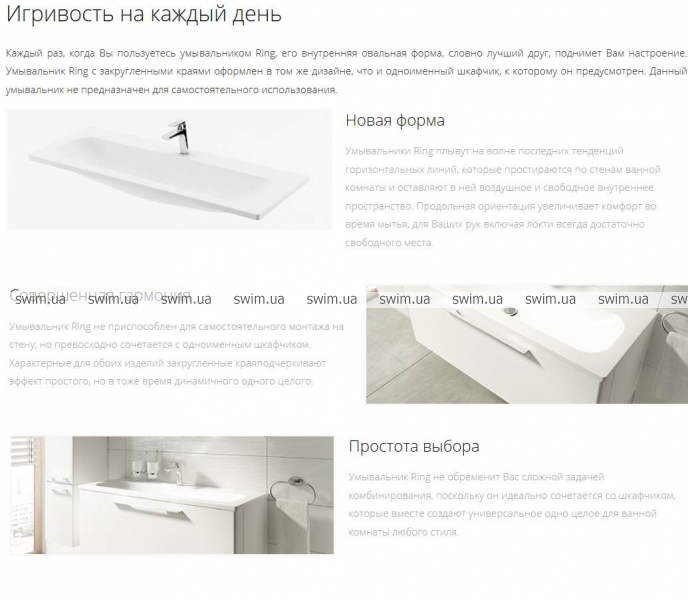 - аксессуары: фиксированный слив для умывальника, смесители, тумба под умывальник SD Ring 800, зеркало Ring 800, Аксессуары для ванной комнаты