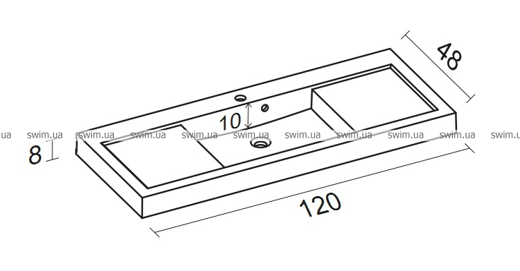 Размеры раковин: 120 см раковина - центральная, одно отверстие для смесителя; 160 см двойная раковина, два отверстия для смесителей