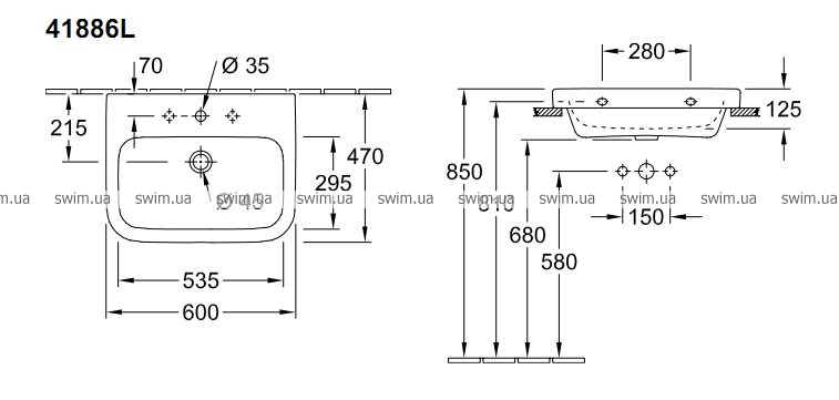 - Тип смесителя/отверстие для смесителя: для 3-позиционного смесителя, центральное отверстие для смесителя выбито