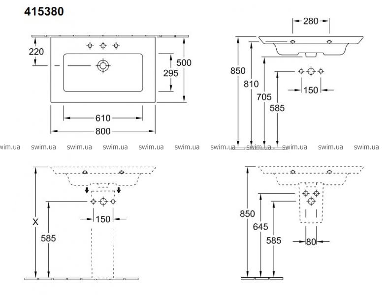 - Тип смесителя/отверстие для смесителя: для 3-позиционного смесителя, центральное отверстие для смесителя выбито