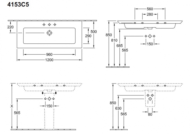 Умывальник Villeroy&Boch Legato 4153C5XX