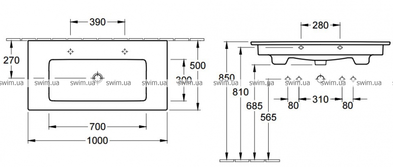 - отверстие под смеситель: для 3-позиционного смесителя, центральное отверстие для смесителя выбито