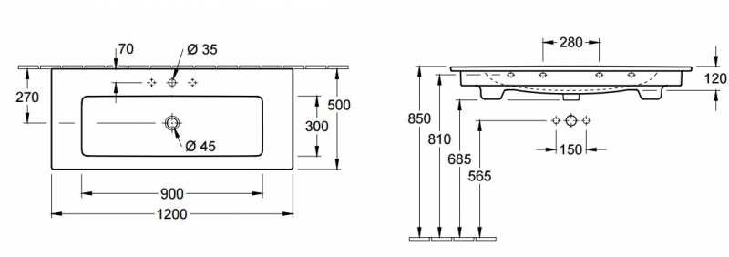 - размер: 1200х500х165 мм