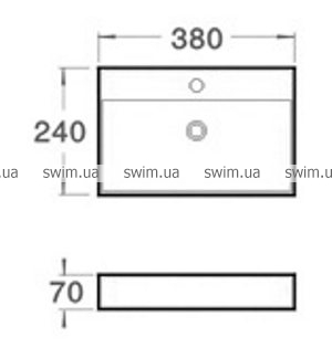 Представленная здесь накладная, прямоугольная керамическая раковина 13-01-11 от Volle имеет размеры 38x24x7 см. Модель имеет отверстие под установку смесителя.
