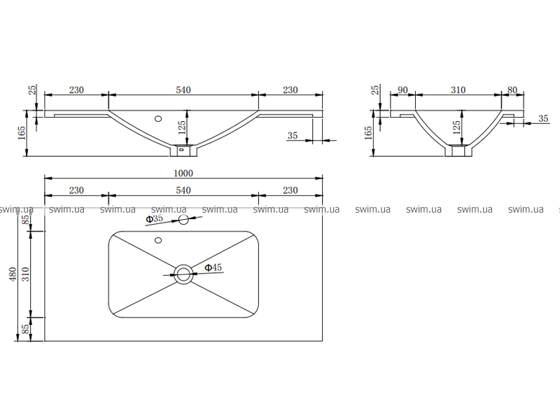 - габаритные размеры 1000x480x165 мм