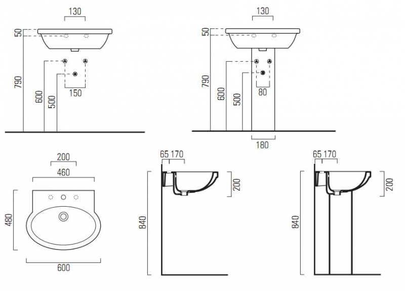 - 1 отверстие под смеситель (предусмотрены три отверстия)