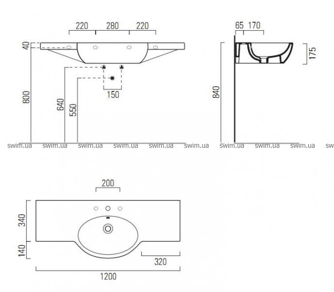 1 отверстие под смеситель (предусмотрены три отверстия)