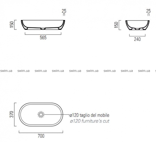 Умывальник 70х37 без перелива, предназначен для смесителя со стены или со столешницы.