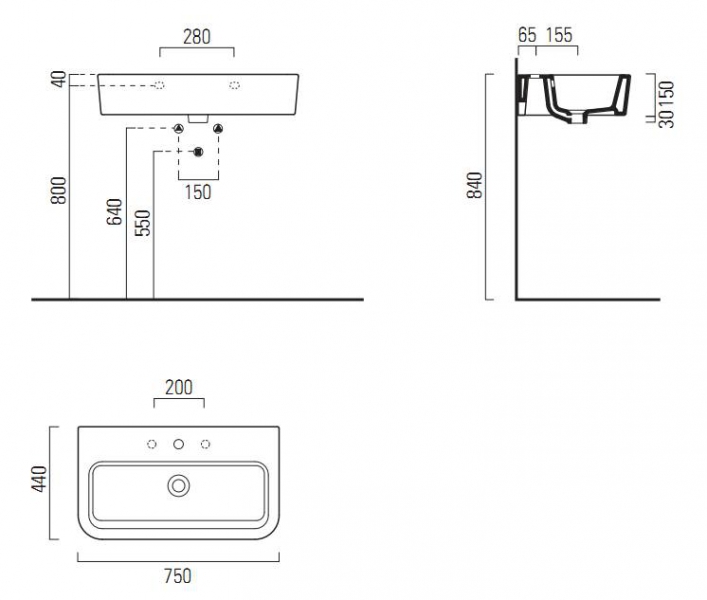 Умывальник 75X44 предназначен для смесителя на 1 отв., на 3 отв. или со стены. Установка - подвесная или накладная. Можно комплектовать с хромированным металлическим полотенцедержателем (MMB75C) с круглым сечением.