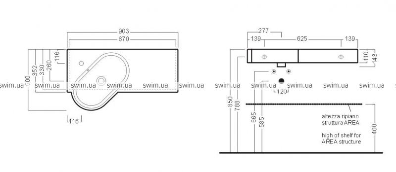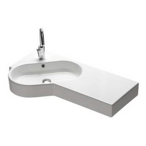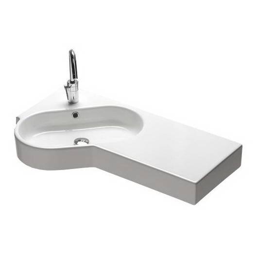 Настенные умывальники 90x50 см асимметричные с левосторонней чашей. Могут также устанавливаться на тумбу или в сочетании с тумбой A-WOOD. Комбинируются с керамическими полками, вешалками для полотенец и сифоном в эстетическом исполнении.