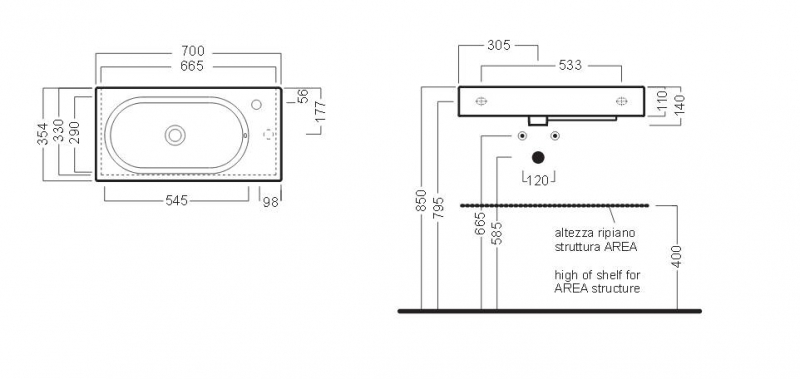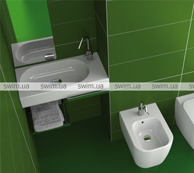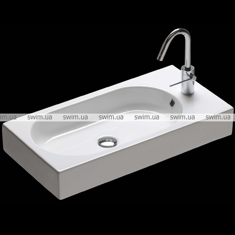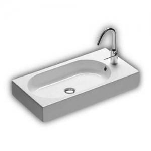 Раковина с одним отверстием под смеситель. Может устанавливаться на стену или на мебель, вдоль стены, в правый или левый угол. Комбинируется с керамическими полками Area (Ареа). Может быть дополнена вешалкой для полотенец.