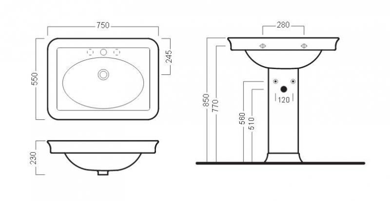 Подвесной настенный умывальник 75 см в комплекте с крепежом (YR47). Может быть дополнен керамическим пьедесталом.