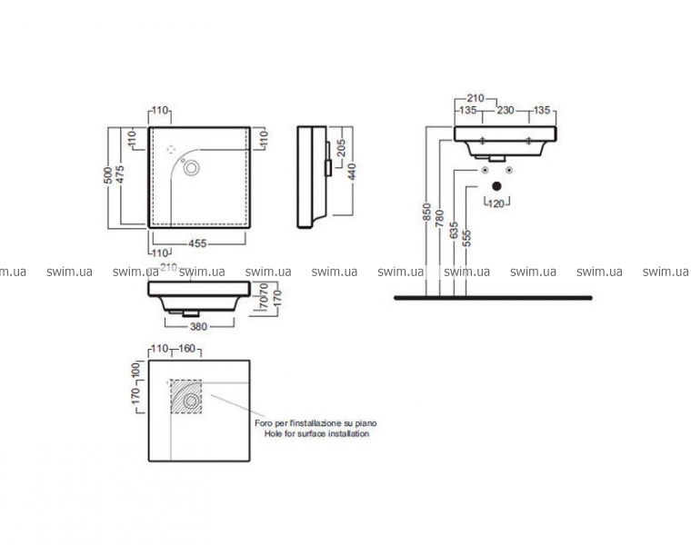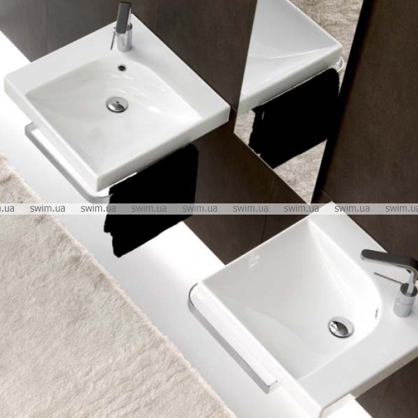 Подвесной настенный умывальник 50x50 см правосторонний, устанавливается на тумбу в сочетании с тумбой G-WOOD, на полку или столешницу G-Top. Комбинируется с керамическими правыми или левыми полками Grandangolo 50, вешалками для полотенец и сифоном в эстетическом исполнении.