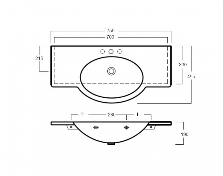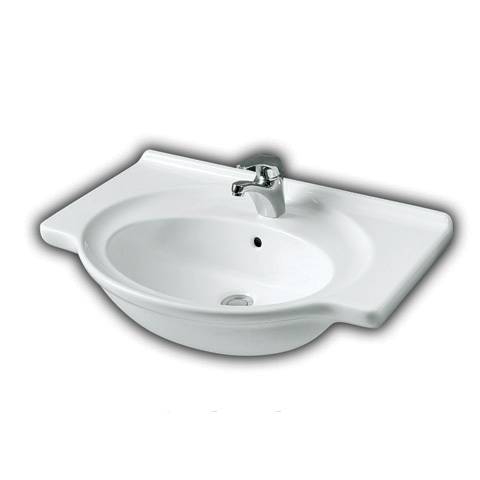 Раковина с одним отверстием под смеситель (предусмотрена разметка на три отверстия). Крепится на стену или устанавливается на мебель. Крепеж раковины (YR47) приобретается отдельно. Может комплектоваться стальным полотенцедержателем и деревянной полкой.
