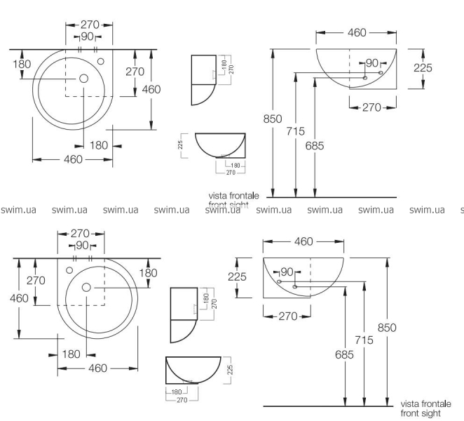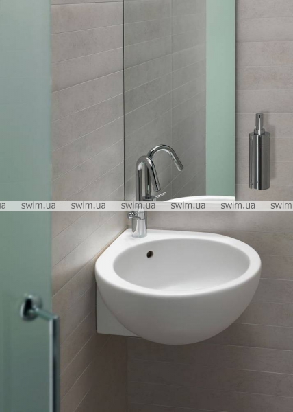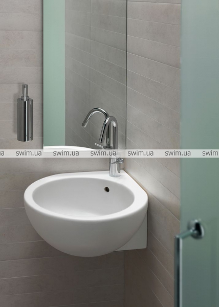 Подвесной настенный угловой умывальник 46 см в комплекте с крепежом(YR47). В правостороннем и левостороннем исполнении может устанавливаться в углу, в центре стены, а также на полке.