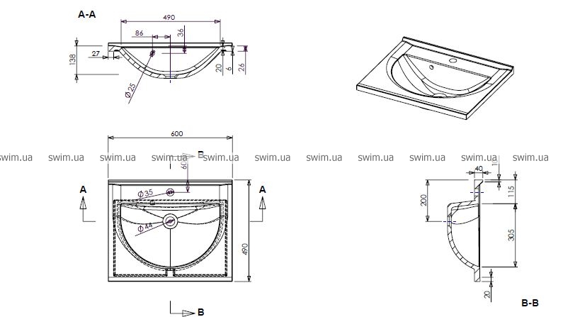 Внимание!!! Раковина поставляется под заказ - 60 дней.