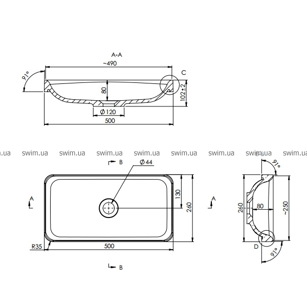 - Умывальник прямоугольной формы