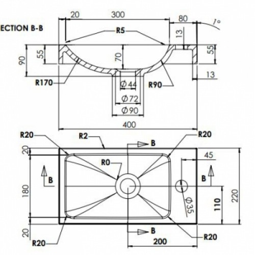 - Умывальник прямоугольной формы
