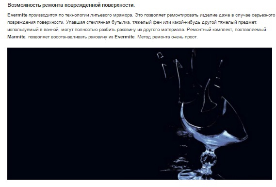 ***Evermite был разработан на основе модифицированных полимерных носителей, благодаря которым раковины, изготовленные из этого материала, являются более прочными и более долговечными по сравнению с обычными композитными раковинами, покрытыми стандартным покрытием из гелькоута. Специально подобранные ингредиенты создают барьер, защищающий поверхность раковины от повреждений.Особенные свойства Evermite были подтверждены в ходе серий испытаний, проведенных независимыми испытательскими лабораториями и центрами сертификации (ITB Polska, VTT Finland, IAPMO USA).