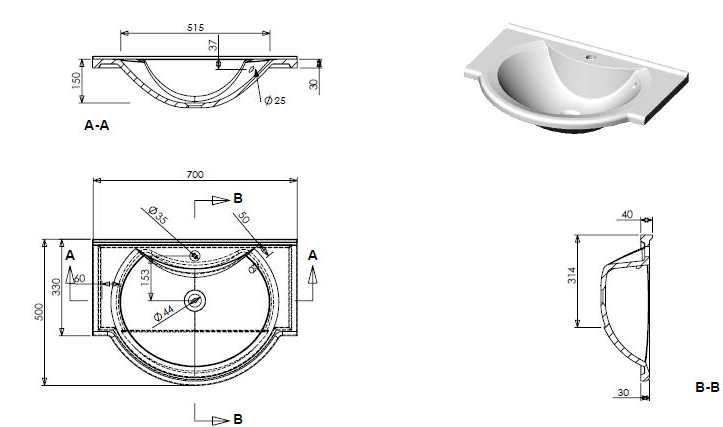 - Умывальник обтекаемой формы