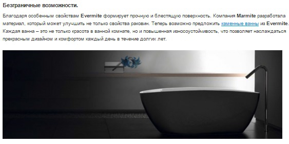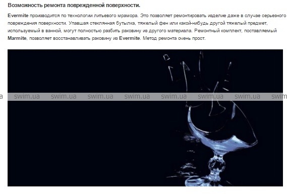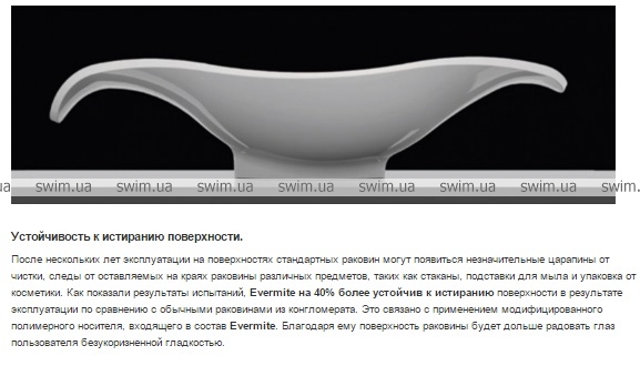 ***Evermite был разработан на основе модифицированных полимерных носителей, благодаря которым раковины, изготовленные из этого материала, являются более прочными и более долговечными по сравнению с обычными композитными раковинами, покрытыми стандартным покрытием из гелькоута. Специально подобранные ингредиенты создают барьер, защищающий поверхность раковины от повреждений.Особенные свойства Evermite были подтверждены в ходе серий испытаний, проведенных независимыми испытательскими лабораториями и центрами сертификации (ITB Polska, VTT Finland, IAPMO USA).