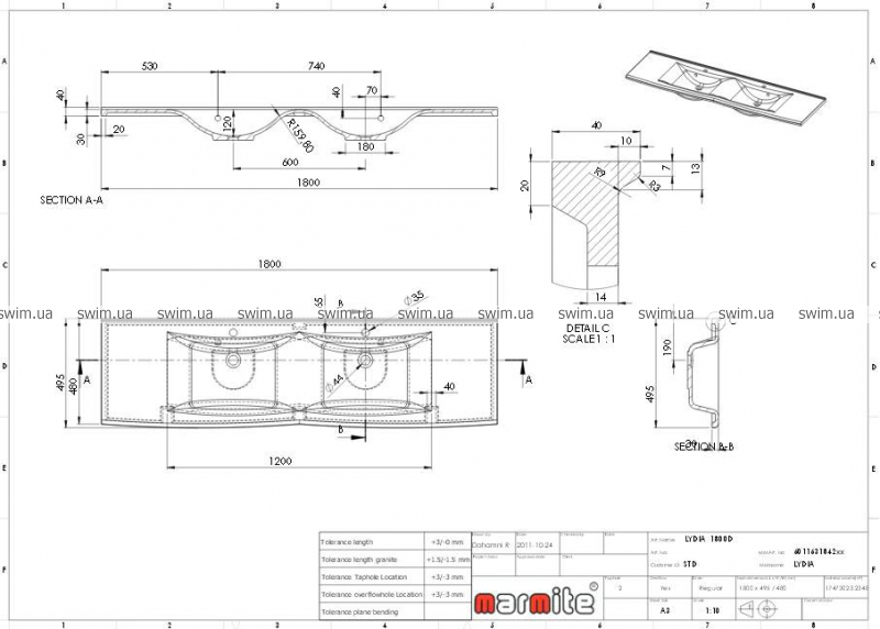 Размер: 1800х495х120 мм.