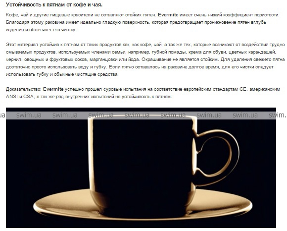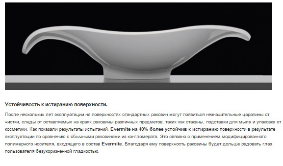 ***Evermite был разработан на основе модифицированных полимерных носителей, благодаря которым раковины, изготовленные из этого материала, являются более прочными и более долговечными по сравнению с обычными композитными раковинами, покрытыми стандартным покрытием из гелькоута. Специально подобранные ингредиенты создают барьер, защищающий поверхность раковины от повреждений.Особенные свойства Evermite были подтверждены в ходе серий испытаний, проведенных независимыми испытательскими лабораториями и центрами сертификации (ITB Polska, VTT Finland, IAPMO USA).