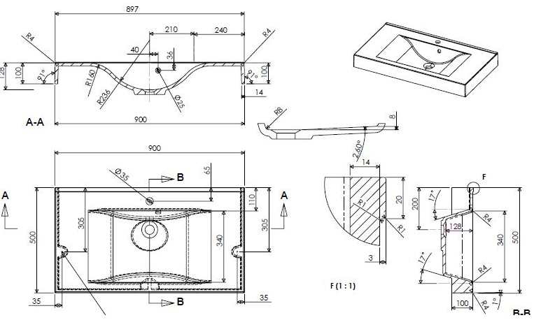 - Умывальник прямоугольной формы