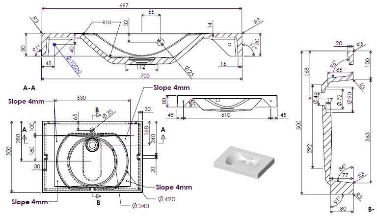 Умывальник прямоугольной формы