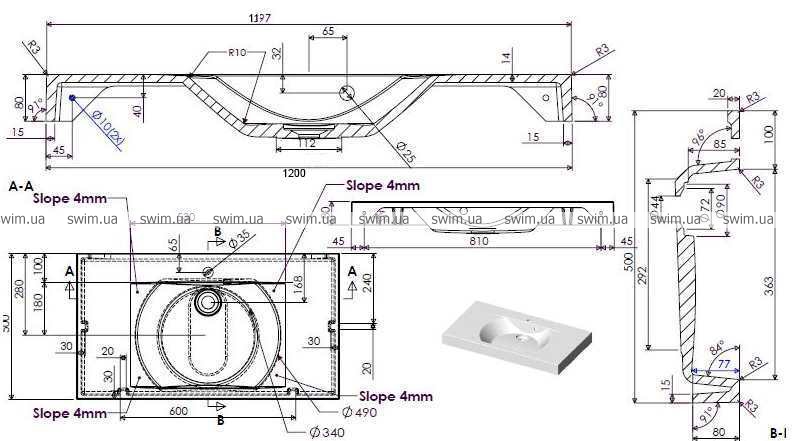 Умывальник прямоугольной формы