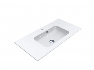 Умивальник на тумбу із литого мармуру DELLA 900 з прямокутною чашею – втілення класики. Широкі крила з обох боків чаші дозволяють розташувати банне приладдя. Раковина має отвори під змішувач та перелив. Умивальник може бути встановлений накладним методом на тумбу або врізаний у полицю.