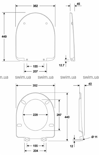 - Сиденье с крышкой твердое, из материала Duroplast, петли металлические M30111