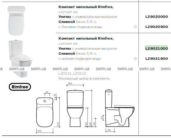 - Дополнительно комплектуется сиденьем с крышкой L20111, L20112