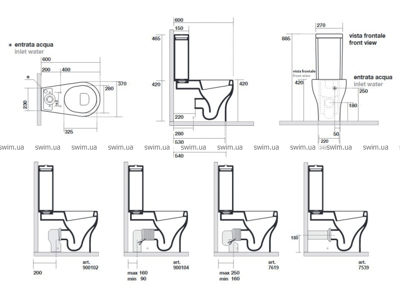 - Слив может быть как в пол, так и в стену при помощи отводов для унитаза