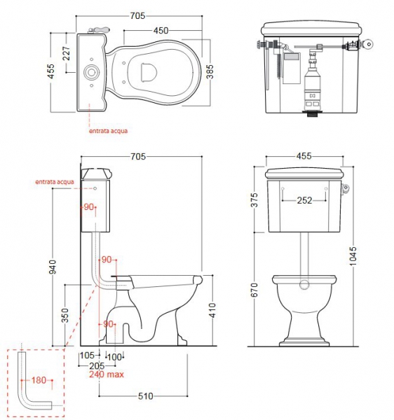 - Цвет труб/смывных механизмов: хром, золото, бронза
