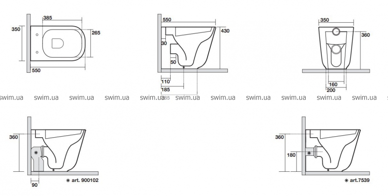 - Размер унитаза(ВхШхГ): 430х350х550 мм