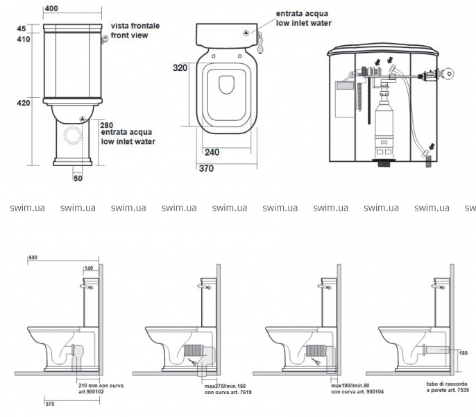 - Цвет смывного механизма для бачка: хром, золото, бронза
