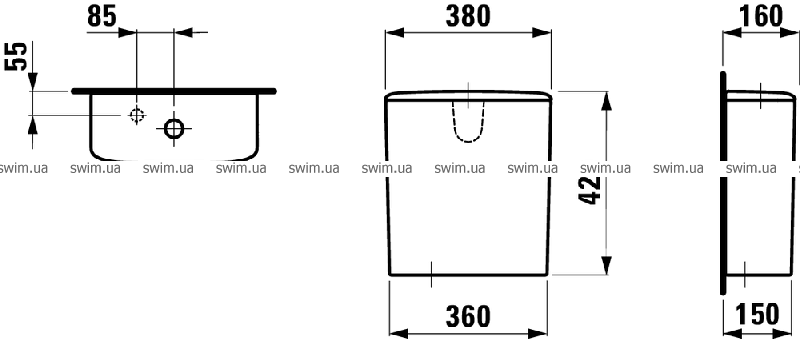 - С подводом воды слева и переливом справа