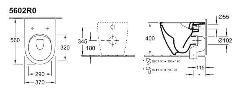 - Возможен вертикальный выпуск при помощи соединительной арматуры Vario 160-180 мм (арт. 87010000) и Vario 70-125 мм (арт. 87110000)
