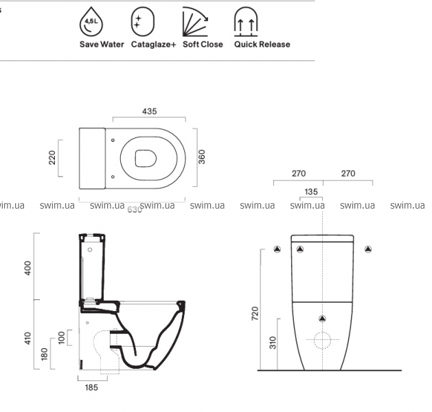 - Зливний бачок для унітазу з можливістю підключення до стіни, 4,5-3 л